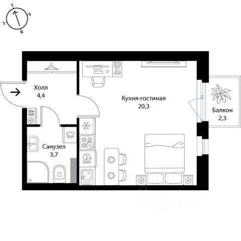Тип: студия с чистовой отделкой