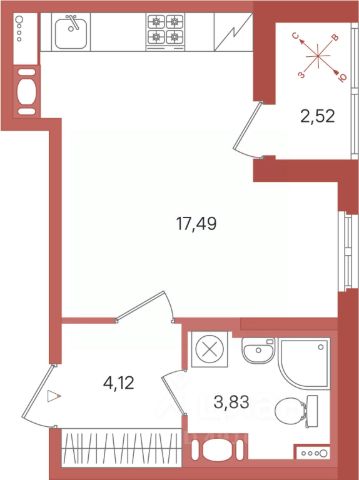 Квартира-студия расположена на 4-м этаже 4-х этажного жилого дома. Общая площадь квартиры - 24,4 кв.м., высота потолка 2.75 м., застекленная лоджия.