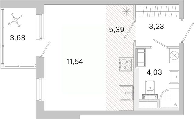 Продается квартира 145, по адресу г. Санкт-Петербург, поселок Шушары, Чудовская улица, дом 14, корпус 1, строение 1, корпус ЖК Монография в Монография на 2 этаже, с площадью 24.1 м2.