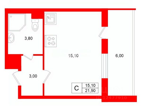 • ✅ Минимальная площадь: 19 м²