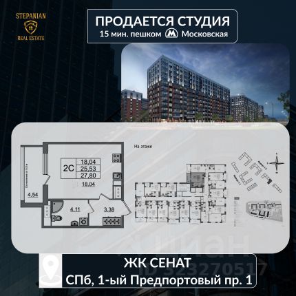 Уютная студия в престижном ЖК "Сенат" — ваш идеальный старт в комфортной жизни, так же прекрасно подойдёт для инвестиций! О квартире: Площадь: 24,01 м² Планировка: - Просторная кухня-гостиная: 18,08 м² - Функциональный санузел: 2,84 м² - Уютный балкон: 4,37 м² - Практичная прихожая: 3,09 м² - Премиальная отделка "Nord Line silver BK" В жилых помещениях: - Флизилиновые обои под покраску - Матовые натяжные потолки - Дизайнерские белые плинтусы с кабель-каналом - Стильные серебристые розетки и выключатели В санузле: - Премиальная плитка Kerama Marazzi - Система "тёплый пол" - Современная сантехника - Подвесная тумба с умывальником - Зеркало На балконах: - Керамогранит - Преимущества жилого комплекса - Остекление в пол Расположение: - Московский район Архитектура: - 10-12 этажные корпуса с авторским дизайном Входная группа: - ресепшен - лаундж-зоны - камин Дворы: - концепция "патио" с закрытой территорией Инфраструктура: - Детский сад и школа-лицей Setl с бассейнами - Детские площадки SetlKids - Детский клуб - Велодорожка (1 км) - Зимний каток - Транспортная доступность Метро: - "Московская" — 20 минут пешком - "Ленинский проспект" — 25 минут пешком На автомобиле: - Центр Петербурга — 20 минут - Аэропорты — 15 минут - КАД и ЗСД — 5 минут - Парки Пушкина и Павловска — 20 минут - Развитая инфраструктура - В шаговой доступности: - Супермаркеты "ВкусВилл", "Дикси", "Магнит" - Аптеки - Контакты Звоните или пишите — отвечу на все вопросы! Ключи: 31.03.2026 Тип сделки: переуступка прав Код пользователя: 185447 Номер в базе: 9215793 Продается квартира-студия на проезде 1-й Предпортовый в Санкт-Петербурге.