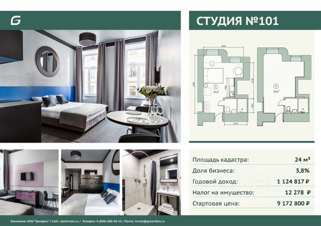 Инвестиционное предложение Апарт-отеля в Санкт-Петербурге от Greenfeel. Успей вложиться сейчас. Повышение цен каждую неделю на 1% 28% средняя доходность наших инвесторов Работаем с 2016 года Звоните нам прямо сейчас, сделайте шаг к финансовой независимости! Наша компания предлагает вам уникальную возможность стать партнером в мире доходной недвижимости! Greenfeel — эксперт в создании доходной недвижимости. Мы превращаем здания в регионах России в современные апарт-отели 3-звезды и 4-звезды по европейским стандартам. Стабильный доход и полная прозрачность обеспечиваются нашей управляющей компанией. Характеристика апартаментов: — Локация: Санкт-Петербург, Лермонтовский пр-т 50, в 7 мин ходьбы от станции метро Балтийская и Балтийского вокзала — Площадь: 12.2 м² — Этаж: 2 — Доход от аренды в месяц: от 47 648 руб. — Полное оснащение мебелью и техникой, стильный и современный дизайн. Преимущества инвестирования в апарт-отель от Greenfeel: Вложения, которые работают: привлекли свыше 1,2 млрд рублей инвестиций и выплатили 1,2 млн рублей дивидендов нашим инвесторам! Стабильный доход: срок окупаемости — всего 5,5 лет, а средняя доходность с учетом капитализации в 2024 году составляет впечатляющие 28%! Прозрачные условия: мы ценим вашу безопасность и уверенно ведем бизнес на основе прозрачности. Защита от инфляции: доходы от апартаментов защищены от колебаний курса и инфляции. Ежемесячные дивиденды: в отличие от банков, где выплаты происходят только по окончании срока, мы предлагаем стабильные выплаты каждый месяц! Наш слоган: Ваши инвестиции работают, пока вы отдыхаете! Мы предлагаем инвестировать в апартаменты под ключ по самой доступной цене с арендатором, быстрая окупаемость, собственная УК, гарантированная доходность на первый год управления, рост стоимости объектов 1% в неделю! Чтобы узнать точную стоимость пишите нам в чат! Не упустите шанс! Ваша будущая прибыль начинается здесь! Позвоните нам по телефону, и наш менеджер ответит на все ваши вопросы! Добавляйте объявление в избранное, чтобы не потерять наше предложение!_ Также: Один взрослый собственник. Без обременений. Кухня остаётся. Мебель и техника остаются. Хорошая транспортная доступность: до метро можно дойти пешком, у дома автобусная остановка. Продам квартиру-студию на проспекте Лермонтовский в Санкт-Петербурге.