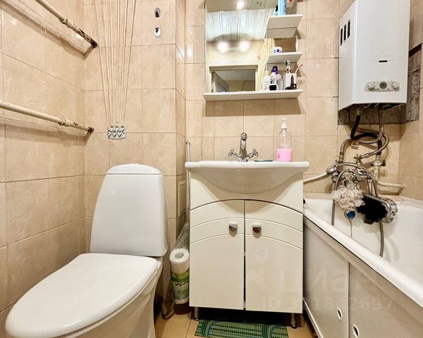 Санузел раздельный, отделан керамогранитом, полы с подогревом , в ванной комнате смонтирована душевая, подвесная раковина с тумбой, зеркало с подсветкой, электрический полотенцесушитель и стиральная машина.
