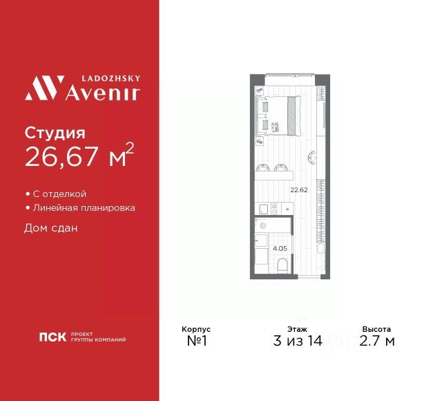 Продаётся студия в ЖК "Большая Охта" на 7 этаже. Общая площадь составляет 20.60 кв. м. Квартира с white box отделкой. Жилой комплекс "Большая Охта" располагается по адресу Санкт-Петербург, Красногвардейский. "ЛСР. Большая Охта" - проект бизнес-класса, в Красногвардейском районе между Якорной и Партизанской улицами, рядом с центром Петербурга. Престижный комплекс с удобной пешеходной и транспортной доступностью. Особенности квартиры высокие потолки и увеличенные окна. Горизонтальная разводка труб водоснабжения и отопления и вынесенные в холлы счетчики сохранят эстетичный дизайн комнат. Встроенные клапаны инфильтрации воздуха будут поддерживать чистоту и свежесть воздуха. Расположение: • 8 мин на авто до станции метро "Новочеркасская"; • 10 мин на авто до станции метро "Ладожская"; • 10 мин на авто до Таврического сада и исторического центра города; • 13 мин на авто до станции метро "Чернышевская"; • 25 мин на авто до КАД. Пространство внутри комплекса разделено на функциональные зоны: тематические, спортивные, уединенные. Все площадки окружают взрослые хвойные и лиственные деревья, подобранные с учетом роста, эстетики и сезонного цветения. Расширенная инфраструктура комплекса продумана до мелочей. Внутри квартала есть все необходимое для жизни с комфортом и удовольствием - детские сады и школы, магазины, площадки для спорта и отдыха, фитнес-залы, модные кофейни и общественные летние веранды. Преимущества: • Подземный паркинг и кладовые помещения; • Двор без машин; • Система "Умный дом" (в т.ч. управление домофоном со смартфона); • Пост охраны и консьерж; • Индивидуальный тепловой пункт; • Колясочные в каждой парадной; • Зарядка для электромобилей. Успейте приобрести квартиру на выгодных условиях! Чтобы узнать подробности, обращайтесь за консультацией по телефону. Продается квартира-студия рядом с метро Ладожская.