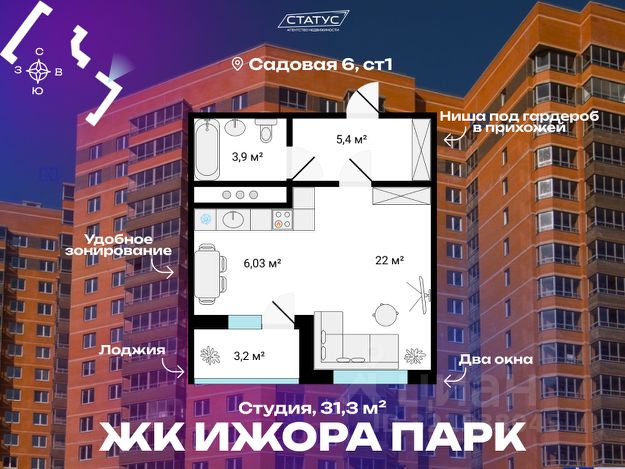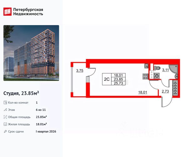 Прямая продажа от застройщика. Отделка White box в подарок! ЖК "Ермак" современный жилой комплекс комфорт-класса на первой береговой линии Невы, рядом с Невским лесопарком. Из большинства квартир (90%) открываются захватывающие панорамные виды на реку. Комплекс спроектирован с учетом современных требований безопасности, технологичности и качества материалов. Во дворе жильцов ждет настоящий сад с разнообразными зонами отдыха для всей семьи и площадкой для выгула собак. А для автовладельцев предусмотрены 436 машино-мест на закрытой парковке. Кроме того, в комплексе расположено 20 коммерческих помещений. Квартиры: Трёхкомнатные квартиры ЖК "Ермак" обладают наилучшими видовыми характеристиками — из их окон открывается великолепный вид на Неву и набережную. Комплекс предлагает широкий выбор планировочных решений — от компактных студий (от 25,2 кв.м) до просторных трёхкомнатных квартир (до 69,9 кв.м). Удобные планировки, в том числе евроформата с объединенной кухней-гостиной, позволяют максимально эффективно использовать пространство. Квартиры сдаются с предчистовой отделкой White Box, что предоставляет будущим жильцам свободу в реализации своих дизайнерских идей. Важное преимущество подобной отделки отсутствие шумных и "грязных" работ при заселении. Инфраструктура: Во дворе жилого комплекса раскинулся настоящий зелёный оазис с разнообразными растениями — идеальное место для отдыха после пробежки или тренировки на специально оборудованных спортивных площадках. В шаговой доступности находятся Невский лесопарк и благоустроенная набережная Невы с чистой водой. Это живописное место напротив устья реки Ижоры имеет историческое значение: именно здесь князь Александр Невский разгромил шведов. А для автовладельцев предусмотрена наземная парковка по периметру квартала. Благоустройство дворов: Природа здесь не просто гость, а полноправный житель. Почти половина территории комплекса отведена под благоустройство. Тщательно подобранные деревья, цветы и кустарники создают неповторимый ландшафт, радующий глаз не меньше, чем вид на реку. Живые изгороди гармонично разделяют детские и спортивные площадки, уютные скамейки и беседки, изумрудные газоны и современные малые архитектурные формы. Для комфорта каждого члена семьи предусмотрены также площадка для выгула собак. Транспортная доступность: Близость к КАД: 7 км до КАД (8 минут на автомобиле). Метро: 20 минут езды на транспорте до станции метро "Ломоносовская". Остановки общественного транспорта рядом с комплексом. Продуманные парадные: Входные группы спроектированы для максимального комфорта жителей и их гостей, как внутри, так и снаружи. Больше свободного места в квартирах! Для хранения колясок, велосипедов и самокатов предусмотрены просторные помещения в каждой парадной. Ключевые преимущества и особенности: Близость к природе: Невский лесопарк и набережная Невы рядом с домом. Зоны отдыха для всей семьи и площадка для выгула собак. Парковка Концепция "двор без машин". Разнообразие планировок кварт Купить квартиру-студию рядом с метро Рыбацкое.