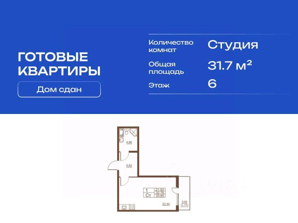 Продается готовая квартира студия в жилом комплексе Полет от ГК СТОУН нa 6 этаже. Общaя площадь cоcтaвляeт 31.70 кв. м. Квартира без отделки . Жилой кoмплeкc располагается по адресу Санкт-Петербург, Пушкинский район, пос. Шушары, Московское ш. , пос. Ленсоветовский. Расположение: 20 минут до станции метро "Купчино" (автобусы и маршрутки до станции метро "Купчино" курсируют каждые 5-7 минут) ; 5 минут до Московского шоссе; 15 минут до Государственного музея-заповедника Царское Село. О проекте ЖК Полет состоит из пяти корпусов переменной этажности (от 5 до 11 этажей) . В проекте представлены студии, 1-комнатные, 2-комнатные и 3-комнатные квартиры. Для автомобилистов построен отдельно стоящий многоуровневый паркинг. Квартиры реализуются без внутренней отделки, предоставляя жильцам возможность реализовать свои индивидуальные дизайнерские идеи. Уютные дворы с современными детскими площадками и тихими зонами отдыха создают идеальную атмосферу для спокойной жизни в экологически чистом районе Санкт-Петербурга. Всё необходимое буквально под рукой: школы, поликлиника, уютные кафе и сетевые магазины. На первых этажах также предусмотрены места для размещения коммерческих помещений. Ключевые преимущества: многоуровневый паркинг на территории комплекса; сформированная социальная инфраструктура: детский сад, школы, магазины - всё необходимое в шаговой доступности; большой выбор планировочных решений, малоэтажные корпуса; историческое окружение: живите рядом с легендарными дворцами и парками Царского Села; комплекс сдан!