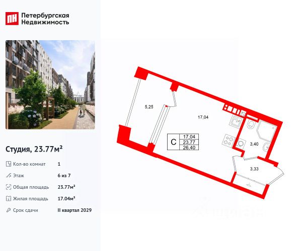 Квартира в новом, современном ЖК Палацио (класс бизнес). Общая площадь 28,48м2 , втч лоджия 4,38м2.