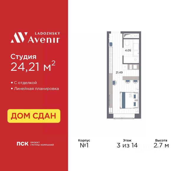 Цена действует при 100% оплате и на определенные ипотечные программы. Подробности — в отделе продаж по телефону. Продаётся студия в ЖК "Большая Охта" на 10 этаже. Общая площадь составляет 21.80 кв. м. Квартира с white box отделкой. Жилой комплекс "Большая Охта" располагается по адресу Санкт-Петербург, Красногвардейский. "ЛСР. Большая Охта" - проект бизнес-класса, в Красногвардейском районе между Якорной и Партизанской улицами, рядом с центром Петербурга. Престижный комплекс с удобной пешеходной и транспортной доступностью. Особенности квартиры высокие потолки и увеличенные окна. Горизонтальная разводка труб водоснабжения и отопления и вынесенные в холлы счетчики сохранят эстетичный дизайн комнат. Встроенные клапаны инфильтрации воздуха будут поддерживать чистоту и свежесть воздуха. Расположение: • 8 мин на авто до станции метро "Новочеркасская"; • 10 мин на авто до станции метро "Ладожская"; • 10 мин на авто до Таврического сада и исторического центра города; • 13 мин на авто до станции метро "Чернышевская"; • 25 мин на авто до КАД. Пространство внутри комплекса разделено на функциональные зоны: тематические, спортивные, уединенные. Все площадки окружают взрослые хвойные и лиственные деревья, подобранные с учетом роста, эстетики и сезонного цветения. Расширенная инфраструктура комплекса продумана до мелочей. Внутри квартала есть все необходимое для жизни с комфортом и удовольствием - детские сады и школы, магазины, площадки для спорта и отдыха, фитнес-залы, модные кофейни и общественные летние веранды. Преимущества: • Подземный паркинг и кладовые помещения; • Двор без машин; • Система "Умный дом" (в т.ч. управление домофоном со смартфона); • Пост охраны и консьерж; • Индивидуальный тепловой пункт; • Колясочные в каждой парадной; • Зарядка для электромобилей. Успейте приобрести квартиру на выгодных условиях! Чтобы узнать подробности, обращайтесь за консультацией по телефону. Купить квартиру-студию в округе Большая Охта в Санкт-Петербурге.