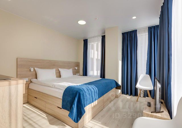 В квартире есть все для комфортного проживания. Двуспальная кровать с ортопедическими матрасами и ящиками для хранения; дополнительно поставили обеденный стол и вместительный шкаф для одежды; есть подушки, одеяло, постельное белье. Кухонный гарнитур из износостойких материалов со встроенной техникой: варочная панель с вытяжкой, холодильник, микроволновая печь; дополнительно есть обеденный стол со стульями, посуда для приготовления, электрический чайник, тарелки и стаканы, столовые приборы