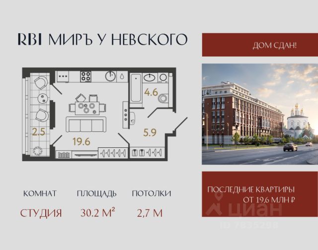Клубный дом "МИРЪ" в самом центре Петербурга — воплощение идеальной картины мира для истинных ценителей прекрасного. Дом строится на Миргородской улице, в двух шагах от Невского проспекта и Московского вокзала. Из окон квартир приятно созерцать красоту Феодоровского собора и вдохновляться захватывающей панорамой Петербурга. В шаговой доступности — метро "Площадь Восстания", крупные торговые центры и "Старо-Невский" проспект с бутиками мировых премиум-брендов. Утром достаточно выйти из парадной, чтобы через 5 минут расположиться в кресле "Сапсана" и с комфортом добраться до Москвы. Путь до КАД и ЗСД на автомобиле займёт не более 15 минут, до аэропорта "Пулково" — полчаса. Камерная атмосфера создаётся за счёт деления на два корпуса и небольшого количества квартир в доме — их всего 263. Корпуса объединены триумфальной аркой, которая формирует закрытый контур внутреннего двора. Статус дома подчеркивают парадные холлы с арочными пролётами, витражным остеклением и произведениями искусства. Автомобилисты смогут спуститься в подземный паркинг на лифте прямо со своего этажа. Гостевую стоянку организуют вне комплекса — чтобы не нарушать безопасность двора. Для жителей в доме появится приватный фитнес-зал. Также в большом корпусе появится муниципальный детский сад с собственной игровой площадкой за пределами камерного пространства дома. В каждой парадной — просторные колясочные. Велосипеды вы сможете оставить на оборудованных велопарковках. Во внутреннем дворе появится живописный сквер, а в центре появится своеобразная "зелёная комната" с воздушным навесом и обогревателями. Детские игровые зоны воплощают природные формы и выполнены из экологичных материалов. В южной части двора расположится амфитеатр с отделкой из натурального дерева. Свободный Wi-Fi позволит подключиться к работе онлайн прямо во дворе или из парадных холлов. Территория дома полностью огорожена и охраняется круглосуточно. Войти в парадные можно только со стороны внутреннего двора по бесконтактному электронному ключу. Спланировать встречу гостей легко и удобно через специальное приложение для жителей. Площадь квартир варьируется от 26 до 146 м². Планировки с просторными кухнями-гостиными, мастер-спальнями, которые предусматривают отдельный санузел и выделенную гардеробную. А квартиры на верхних этажах дома с трёхметровыми потолками, панорамными окнами и видовыми террасами, откуда обозревается исторический центр города. Квартира-студия в округе Лиговка-Ямская в Санкт-Петербурге.
