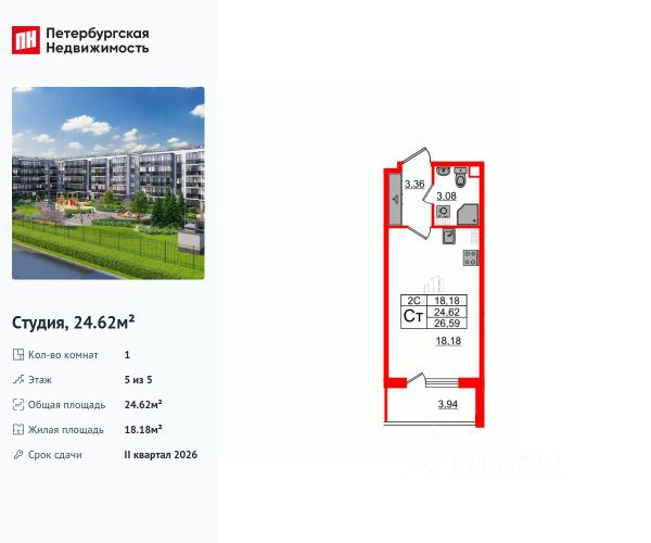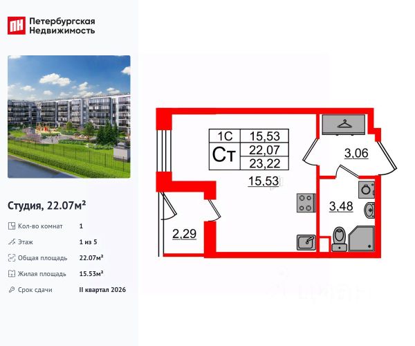 Продается уютная студия от застройщика в жилом комплексе "Парадный ансамбль" в престижном Московском районе. До метро можно добраться на транспорте всего за 20 минут. Удобная, классическая, функциональная европланировка, просторная прихожая 3.92 м². Общая площадь студии - 22.44 м², жилая 15.3 м², высота потолка 2.77 м. Квартира продается с отделкой "Норд Лайн серый". Что особенного в ЖК "Парадный ансамбль"? • Уникальные квартиры. Хай Флет (High Flat) на последних этажах, палисадники у квартир на первом этаже, семейные секции, квартиры с саунами и окном в ванной • Масштабное малоэтажное строительство в престижном Московском районе • Рекреационные зоны: парадный парк в центре квартала, ручей с собственной набережной, центральная площадь, ресторанный комплекс и пешеходный бульвар • Фасады из керамогранита и кирпича с яркими и акцентными входными группами • Две самые большие площадки Setl Kids и Setl Sport • Инновационный Лицей Setl с оригинальной архитектурной концепцией и уникальной образовательной средой Продам квартиру-студию в округе Пулковский меридиан в Санкт-Петербурге.