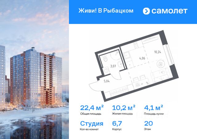 Строим кварталы для жизни с заботой о будущем. Предлагается квартира студия комфорт-класса 22,06 кв.м в корпусе 6,7 на 3 этаже, в ЖК "Живи! В Рыбацком" Квартира без отделки. Доступность опции "отделка" и возможность комплектации мебелью и декором уточняйте у застройщика. Приобрести квартиру возможно по специальным акциям от застройщика, с текущими условиями акций можно ознакомиться в блоке "Акций". Цена динамическая и может отличаться, уточняйте актуальность у застройщика. Квартал "Живи! В Рыбацком" в Невском районе Санкт-Петербурга расположен рядом с рекой Славянкой и парком. Всего 20 минут пешей прогулки — и вы у метро "Рыбацкое". Автомобилисты будут добираться до КАДа за десять минут. В квартале работают два детских сада, школа и кабинет врача. На первых этажах зданий открыты магазины, кафе и салоны красоты. Во дворе — зеленые бульвары, воркаут-площадка, спортивный и игровой кластеры. Для машин — подземный паркинг. Кирпично-монолитные дома с каменной облицовкой — воплощение долговечности и тепла. Есть в квартале и камерный 30-й корпус, в нем восемь этажей, 70 квартир и приватный двор-парк. В сквозных парадных — безбарьерная среда, помещения для хранения колясок и велосипедов и система видеонаблюдения. Продается квартира-студия в округе Рыбацкое в Санкт-Петербурге.