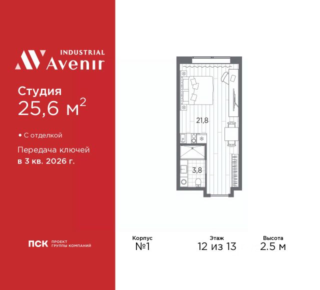 Просторные однокомнатные апартаменты-студия с отделкой в ЖК "Industrial AVENIR" на 5 этаже. Общая площадь: 24.5 кв.м., площадь гостиной 20.7 кв.м., из которых 5 кв.м. выделено под кухонную зону. Все окна выходят на одну сторону. В апартаментах один совмещенный санузел. Высота потолков 2.5 м. Апартаменты находятся в корпусе 1. Дом монолитный, одноподъездный, высотой 13 этажей. На этаже 64 квартиры. В подъезде 3 пассажирских и 3 грузовых лифта. Окончание строительства - 3 квартал 2026 года. Оформление сделки по договору долевого участия. В шаговой доступности от дома расположены станции метро (расстояние по прямой): "Кировский завод" (300 м), "Путиловская" (300 м), "Автово" (1.6 км), также недалеко от этого корпуса расположены станции метро: "Нарвская", "Ленинский Проспект", "Балтийская". 13ти этажное здание апарт-отеля строится по монолитной технологии. В номерном фонде 739 апартаментов, в том числе юниты с террасами и в формате "евро 2", офисные и коммерческие помещения, оборудованный коворкинг, подземный паркинг. На первом этаже лобби 160 кв.м. с рецепшн, выставочным пространством, кафе и гостевой зоной. Окончание строительства апарт - отеля - III квартал 2026 года. Оформление сделки по договору долевого участия. Семейная ипотека на апартаменты не распространяется. ОТДЕЛКА Все апартаменты сдаются с полной чистовой отделкой, выполненной в концептуальном индустриальном стиле. Стены оформлены обоями под покраску в сером оттенке. Одна из стен акцентная - с декоративной штукатуркой, имитирующей бетон. Элементы черного металла представлены в трековых светильниках, дверной фурнитуре и сантехнике. На полу уложен износоустойчивый ламинат с деревянной фактурой. Еще одним элементом индустриального стиля в отделке апартамента является крупноформатный керамогранит на полу и стенах санузла, имитирующий фактуру и цвет кортеновской стали. ЗD по шоу руму. РАСПОЛОЖЕНИЕ Апарт-отель Industrial Avenir строится в 300-х метрах от метро "Кировский завод" и "Путиловская" (открытие 2025 г) на центральной магистрали Кировского района проспекте Стачек. Близость развязок с ЗСД и КАД фактически снимает любые ограничения в осмотре пригородов и выбора направлений в личном туристическом плане на день. Предпосылкой для открытия пятого апарт-отеля сети Avenir - Industrial Avenir, стал высокий потенциал локации рядом с крупным производственным кластером, центральной магистралью Кировского района и шаговой доступностью от двух станций метро. Новый апарт-отель возводится рядом с первым апарт-отелем сети - Putilov Avenir, открытым в 2022 году. УПРАВЛЕНИЕ ДОХОДНОСТЬЮ Управлением номерным фондом Industrial Avenir займется структура ГК "ПСК" PSK Invest, входящая в пятерку крупнейших управляющих компаний апарт-отелями в Санкт-Петербурге. Купить апартаменты в Industrial Avenir возможно сразу с управлением, заключив договор с УК PSK Invest и, тем самым, приобрести готовый арендный бизнес. Апартаменты недвижимое имущество, которое является вашей собственностью, и Квартира-студия на проспекте Стачек в Санкт-Петербурге.