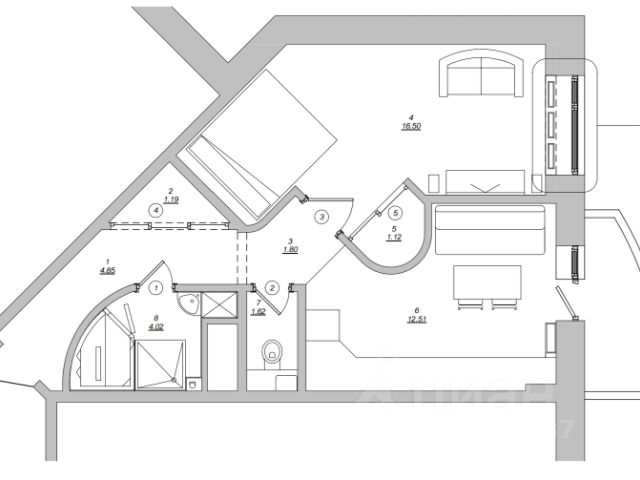 В квартире три изолированные комнаты (16.1 - 20.3 - 11.4), просторная кухня 14.9 метров, довольно высокие потолки 2.7 метра.