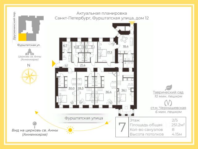Окна квартиры обращены на восток, что обеспечивает большое количество естественного освещения, при этом исключая солнцепёк.