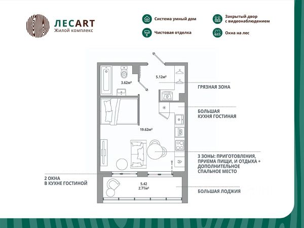 Продаётся студия квартира 003, общей площадью 33.1 кв.м., на 1. Дом комфорт-класса, 12 этажей, в окружении леса и малоэтажной застройки. Проект с умным домом. Передача квартир в феврале 2025г. РАСПОЛОЖЕНИЕ И БЛАГОУСТРОЙСТВО Расположение ЖК "ЛесART" порадует любителей чистого воздуха — рядом находятся лесопитомник и Шунгеровский заказник. Особенность комплекса это его ART дворы, которые оформлены по мотивам произведений Василия Кандинского, Пита Мондриана и Пабло Пикассо. Дворы закрыты от машин, что обеспечивает безопасность детей и взрослых. Для семей с детьми особенно удобно наличие детского сада и школы прямо во дворе комплекса. На первом этаже расположены магазины, маркетплейсы, кофейни и всё что необходимо для повседневной жизни. Холлы - это продуманные пространства с колясочными, сквозными проходами и приятной музыкой в лифтах. СИСТЕМА УМНОГО ДОМА В КАЖДОЙ КВАРТИРЕ - Комфорт. Управление освещением, мультимедиа и климат-контролем. - Безопасность. Видеонаблюдение и мониторинг систем безопасности. - Экономия. Контроль систем и оптимизация энергопотребления. - Удобство. Управление с помощью мобильного телефона. ГК "ЕДИНО" Входит в тройку компаний-лидеров региона по потребительским качествам жилых комплексов, объемам ввода жилья и объемам текущего строительства. В цифрах: - 23 года на рынке - Более 50 построенных домов - 60 000+ счастливых обладателей квартир ПРЕИМУЩЕСТВА ПОКУПКИ В ЖК "ЛЕСART": - Сниженная ставка по семейной ипотеке от 5,5%; - Рассрочка без переплаты; - Обмен старой квартиры на новую без комиссии; - Возможность использовать материнский капитал; ЗАПИСЫВАЙТЕ НА ПРОСМОТР! Мы ждем Вас в нашем уютном шоуруме. Вы увидите отделку, дизайнерские решения и познакомитесь со сценариями Умного дома! Такси до офиса продаж и обратно БЕСПЛАТНО!