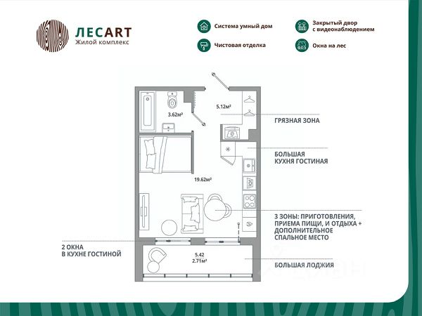 Продаётся студия квартира 205, общей площадью 31.07 кв.м., на 1. Дом комфорт-класса, 12 этажей, в окружении леса и малоэтажной застройки. Проект с умным домом. Передача квартир в апреле 2026г. РАСПОЛОЖЕНИЕ И БЛАГОУСТРОЙСТВО Расположение ЖК "ЛесART" порадует любителей чистого воздуха — рядом находятся лесопитомник и Шунгеровский заказник. Особенность комплекса это его ART дворы, которые оформлены по мотивам произведений Василия Кандинского, Пита Мондриана и Пабло Пикассо. Дворы закрыты от машин, что обеспечивает безопасность детей и взрослых. Для семей с детьми особенно удобно наличие детского сада и школы прямо во дворе комплекса. На первом этаже расположены магазины, маркетплейсы, кофейни и всё что необходимо для повседневной жизни. Холлы - это продуманные пространства с колясочными, сквозными проходами и приятной музыкой в лифтах. СИСТЕМА УМНОГО ДОМА В КАЖДОЙ КВАРТИРЕ - Комфорт. Управление освещением, мультимедиа и климат-контролем. - Безопасность. Видеонаблюдение и мониторинг систем безопасности. - Экономия. Контроль систем и оптимизация энергопотребления. - Удобство. Управление с помощью мобильного телефона. ГК "ЕДИНО" Входит в тройку компаний-лидеров региона по потребительским качествам жилых комплексов, объемам ввода жилья и объемам текущего строительства. В цифрах: - 23 года на рынке - Более 50 построенных домов - 60 000+ счастливых обладателей квартир ПРЕИМУЩЕСТВА ПОКУПКИ В ЖК "ЛЕСART": - Сниженная ставка по семейной ипотеке от 5,5%; - Рассрочка без переплаты; - Обмен старой квартиры на новую без комиссии; - Возможность использовать материнский капитал; ЗАПИСЫВАЙТЕ НА ПРОСМОТР! Мы ждем Вас в нашем уютном шоуруме. Вы увидите отделку, дизайнерские решения и познакомитесь со сценариями Умного дома! Такси до офиса продаж и обратно БЕСПЛАТНО!