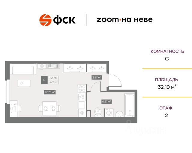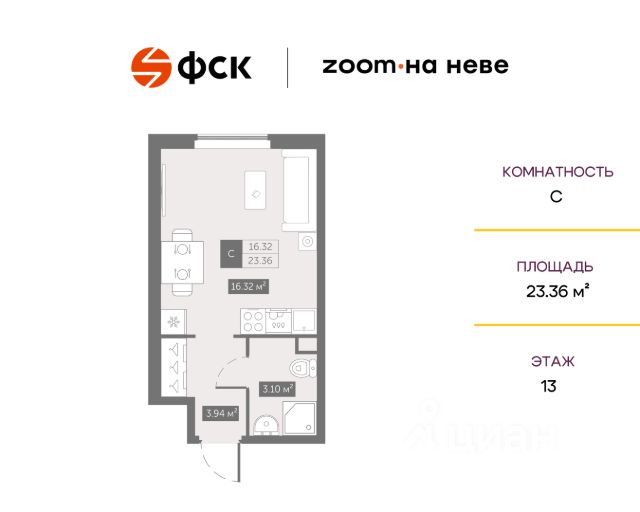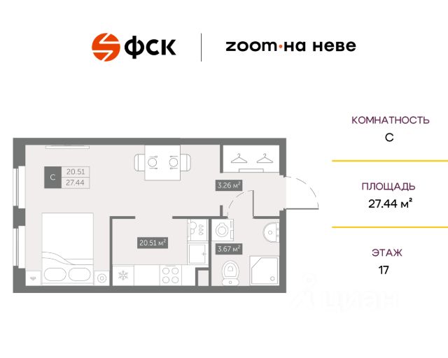 Цена со скидкой до 30% в прямой продаже от застройщика — только в этом месяце. На апартаменты действует беспроцентная рассрочка. Роскошные виды на Неву. Апартамент-студия в комплексе класса бизнес-лайт Зум на Неве на 13-м этаже. Общая площадь 18,52. Без отделки. Зум на Неве расположен в новом месте силы рядом с центром города на первой линии Октябрьской набережной в Невском районе, всего в 7 км от исторической части Санкт-Петербурга. Большой выбор эргономичных и максимально продуманных планировок позволит каждому найти вариант по душе. Панорамные виды на Неву, благоустроенные дворы, детская игровая комната, подземный паркинг, коммерческие зоны на первом этаже, это и многое другое делает Зум на Неве идеальным местом для жизни. Особенности: - Панорамные виды на Неву и город; - 10 мин. до Парка Строителей, 15 мин. до Лондон-молла, Ленты, Максидома, 15 мин. до метро "ул. Дыбенко", 12 мин. до КАД, 10 мин. до центра; - Единая архитектурная концепция. Сдержанные и монументальные фасады в неоклассическом стиле; - Парадный лобби для жильцов. Единый вход в комплекс с администратором, зоной ресепшн и охраной, зоной для бесконтактной доставки посылок и еды; - Подземный отапливаемый паркинг с доступом из парадной; - Доступно 3 варианта отделки на выбор: черновая, предчистовая (White Box) и чистовая; - Зоны отдыха для взрослых и детей, Wi-Fi-покрытие во дворе и в паркинге, зоны для питомцев, арт-объекты и много другое. В шаговой доступности вся необходимая инфраструктура от детских садов и школ до супермаркетов и салонов красоты; - Все происходящее контролируется видеокамерами, а покой внутренней территории и безопасность ваших детей гарантируется полным отсутствием транспорта во дворах в концепции "без машин".