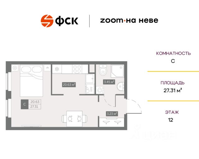 Цена со скидкой до 30% в прямой продаже от застройщика — только в этом месяце. На апартаменты действует беспроцентная рассрочка. Роскошные виды на Неву. Апартамент-студия в комплексе класса бизнес-лайт Зум на Неве на 13-м этаже. Общая площадь 18,52. Без отделки. Зум на Неве расположен в новом месте силы рядом с центром города на первой линии Октябрьской набережной в Невском районе, всего в 7 км от исторической части Санкт-Петербурга. Большой выбор эргономичных и максимально продуманных планировок позволит каждому найти вариант по душе. Панорамные виды на Неву, благоустроенные дворы, детская игровая комната, подземный паркинг, коммерческие зоны на первом этаже, это и многое другое делает Зум на Неве идеальным местом для жизни. Особенности: - Панорамные виды на Неву и город; - 10 мин. до Парка Строителей, 15 мин. до Лондон-молла, Ленты, Максидома, 15 мин. до метро "ул. Дыбенко", 12 мин. до КАД, 10 мин. до центра; - Единая архитектурная концепция. Сдержанные и монументальные фасады в неоклассическом стиле; - Парадный лобби для жильцов. Единый вход в комплекс с администратором, зоной ресепшн и охраной, зоной для бесконтактной доставки посылок и еды; - Подземный отапливаемый паркинг с доступом из парадной; - Доступно 3 варианта отделки на выбор: черновая, предчистовая (White Box) и чистовая; - Зоны отдыха для взрослых и детей, Wi-Fi-покрытие во дворе и в паркинге, зоны для питомцев, арт-объекты и много другое. В шаговой доступности вся необходимая инфраструктура от детских садов и школ до супермаркетов и салонов красоты; - Все происходящее контролируется видеокамерами, а покой внутренней территории и безопасность ваших детей гарантируется полным отсутствием транспорта во дворах в концепции "без машин".