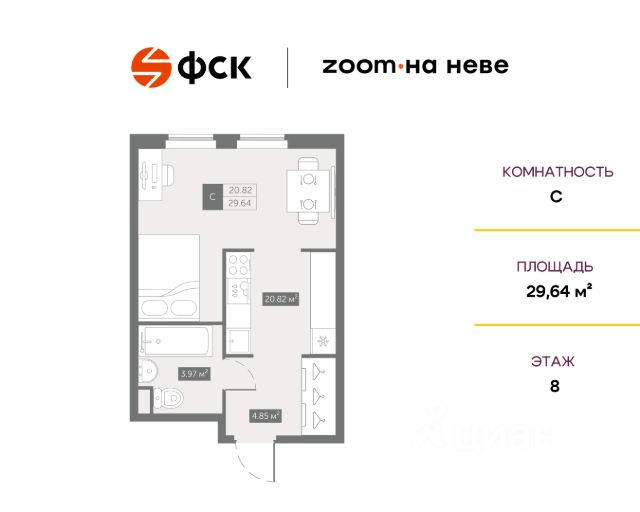 Цена со скидкой до 30% в прямой продаже от застройщика — только в этом месяце. При покупке апартаментов - паркинг за полцены. На все апартаменты действует беспроцентная рассрочка. Купите на распродаже! Покупка недвижимости в Zoom на Неве сейчас со скидкой до 30% позволит через 2 года получить доход до 6 300 000 руб. Роскошные виды на Неву. Апартамент-студия в комплексе класса бизнес-лайт Zoom на Неве на 3-м этаже. Общая площадь 22,4. Без отделки. Zoom на Неве расположен в новом месте силы рядом с центром города на первой линии Октябрьской набережной в Невском районе, всего в 7 км от исторической части Санкт-Петербурга. Большой выбор эргономичных и максимально продуманных планировок позволит каждому найти вариант по душе. Панорамные виды на Неву, благоустроенные дворы, детская игровая комната, подземный паркинг, коммерческие зоны на первом этаже, это и многое другое делает Zoom на Неве идеальным местом для жизни. Особенности: - Панорамные виды на Неву и город; - 10 мин. до Парка Строителей, 15 мин. до Лондон-молла, Ленты, Максидома, 15 мин. до метро "ул. Дыбенко", 12 мин. до КАД, 10 мин. до центра; - Единая архитектурная концепция. Сдержанные и монументальные фасады в неоклассическом стиле; - Парадный лобби для жильцов. Единый вход в комплекс с администратором, зоной ресепшн и охраной, зоной для бесконтактной доставки посылок и еды; - Подземный отапливаемый паркинг с доступом из парадной; - Доступно 3 варианта отделки на выбор: черновая, предчистовая (White Box) и чистовая; - Зоны отдыха для взрослых и детей, Wi-Fi-покрытие во дворе и в паркинге, зоны для питомцев, арт-объекты и много другое. В шаговой доступности вся необходимая инфраструктура от детских садов и школ до супермаркетов и салонов красоты; - Все происходящее контролируется видеокамерами, а покой внутренней территории и безопасность ваших детей гарантируется полным отсутствием транспорта во дворах в концепции "без машин".