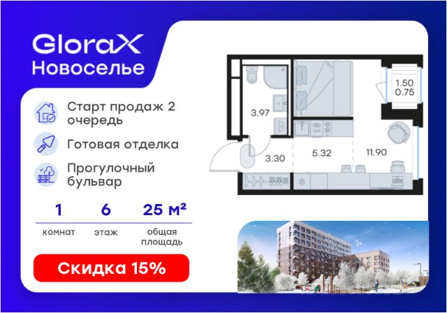 Продаётся квартира-студия площадью 25,84 кв.м на 3 этаже 12 этажного дома (Корпус 4.1, Секция 4) проекта ПИК Таллинский парк. Светлый просторный подъезд на уровне земли, функциональная планировка, большие окна, c отделкой. "Таллинский парк" - проект в Ленинградской области, в районе Новоселье. До станции метро "Проспект Ветеранов" - 15 минут на автомобиле, а до КАД можно доехать всего за 4 минуты. "Таллинский парк" включает 16 жилых домов, детский сад и школу. В проекте появится центральный сквер с обильным озеленением, а через весь квартал протянутся широкие пешеходные бульвары. В зелёных дворах-парках будут оборудованы современные детские и спортивные площадки, обустроены места для отдыха. На первых этажах разместятся магазины, кафе и другие сервисы. Проектом предусмотрены персональные кладовые помещения - это доступный, экономичный и удобный способ хранения сезонных и крупногабаритных вещей. Освободите свою квартиру для полноценной жизни. Район Новоселье активно развивается в городском формате: здесь уже работают детские сады, школа и магазины. Для любителей зимних видов спорта открыта круглосуточная ледовая арена Ice Rink. За покупками и развлечениями также можно быстро доехать: 10 минут - и вы в Аутлете Fashion House Таллинское, гипермаркетах Лента, Леруа Мерлен и Окей. В 10 минутах на автомобиле находится Финский залив, на берегу которого расположились объекты культурного наследия. Рядом - Константиновский парк с отреставрированным дворцом, а чуть дальше расположена усадьба Знаменка. В великолепном Петергофе вы будете уже через 20 минут. Артикул 1026677 (Застройщик ООО "СПЕЦИАЛИЗИРОВАННЫЙ ЗА СТРОЙЩИК "СТРОЙ-ЭКСПЕРТ ") [cn_sbp_1829987]