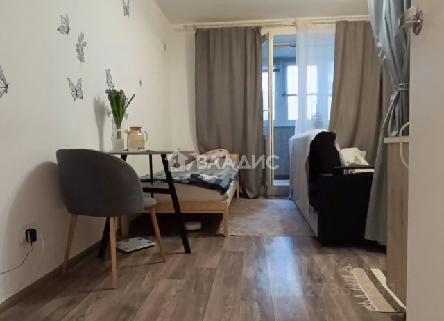 Комната: раскладной овальный белый стол, мягкие складные стулья, мебельный гарнитур, шкаф-купе с зеркалом (3 секции), новый спальный диван Hoff на двоих с подушками, новый палас. Квартира тёплая, батарея с регулировкой температуры. Люстра светодиодная с пультом и регулировкой оттенков.