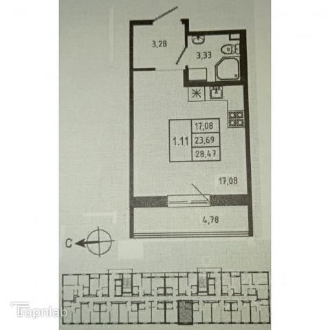 Квартира-студия 28 кв.м (в т.ч. лоджия 4,5 кв.) Дом сдан, придомовая территория благоустроена.