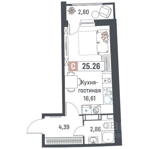 СТУДИЯ С ПРЕДЧИСТОВОЙ ОТДЕЛКОЙ возле ТЦ в ID Мурино