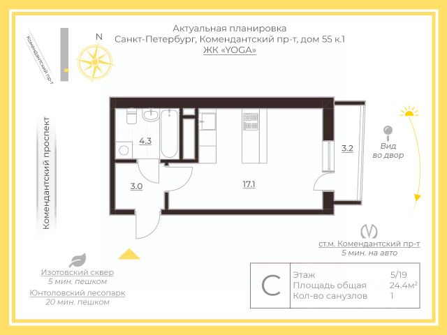 О квартире:Студия 24,8 м2 правильной прямоугольной формы!Просторная жилая комната — 18 м2 (+ лоджия 1,3 м2) свободно размещается кухонная и жилая зона!Комфортный 3 этаж, всего 13 этажейОкна во двор, тишина и спокойствие обеспечены!Увеличенные окна, окна на ширину стены, светло!Выполнен евроремонт,Натяжной потолок, светильникиНа стенах обои,установлены двери,новый отремонтированный совмещенный санузел,На полу ламинат и плитка,потолочное освещение, люстрыХороший напор водыПредусмотрена лоджия, которую можно реконструировать, при желанииВ квартире никто не проживалПреимущества комплекса:Парк около дома! Буквально в двух шагах — зелёная зона Юнтоловского заказника. Отличное место для прогулок и отдыха!Невысокая этажность дома 13 этажей, Дом хорошего комфорт -классаневысокая застройка микрорайона : рядом дома бизнес и комфорт - класса Во дворе находится новая элитная IT-школа 2025 г.Закрытый, благоустроенный двор, возможность сквозного прохода между корпусами и посещение смежных дворов и зон отдыха!Подземный паркингВидеонаблюдение на территории комплекса, в паркинге и входных группах. Входы в парадные и на придомовую территорию оборудованы видеодомофонами и системами контроля доступа.Установлена IP домофония с интерактивным многофункциональным экраном и мобильным приложением.Дворы свободные от машин.Современные детские площадки, зоны отдыха и прекрасное озеленение территории,Детский клуб Аквилон Kids и детский сад!В пешей доступности: магазины, супермаркеты, школы, детские сады, Ozon, кафе, пекарни, салоны красоты, аптеки, стоматологии, детские клубы, зоотовары.Вас ждет комфорт, продуманная инфраструктура и приятное окружение!рядом 3 минуты выезд на ЗСД Документы:Один взрослый собственникКвартира без обременений, без ипотеки, без мат. капиталаДокументы готовы к сделкеСопровождение агентством недвижимостипомощь в подборе лучшего варианта ипотеки, при необходимости Не упустите возможность приобрести просторную светлую студию в комфортном доме рядом с парком по отличной стоимости!