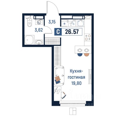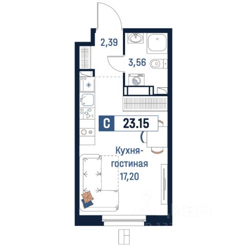 "Продается квартира площадью 35.76 кв. м с предчистовой отделкой. Квартира расположена на 1 этаже 8 этажного дома, в жилом комплексе комфорт-класса "Финский Квартал".