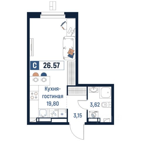 Продается студия 26,72 кв.м. на 2 этаже. В продаже квартира в жилом комплексе комфорт-класса "Панорама Юкки".