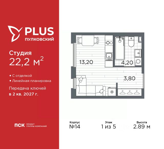 Цена действует при 100% оплате и на определенные ипотечные программы. Подробности — в отделе продаж по телефону. Продается студия в ЖК "Пулково Лейк" на 2 этаже. Общая площадь составляет 25.70 кв. м. Квартира с чистовой отделкой. Жилой комплекс "Пулково Лейк" располагается по адресу Санкт-Петербург, Московский. Пулково Лейк - проект малоэтажной застройки на берегу озера на границе Московского и Пушкинского районов. Дома высотой всего 4 этажа, квартиры от уютных студий до трехкомнатных квартир для большой семьи. Широчайший выбор планировок, включая квартиры с мастер-спальнями, патио, каминами, саунами, двухуровневые квартиры. Школа, детские сады, парк на берегу озера и выезды на Пулковское и Петербургское шоссе. Расположение: • 5 мин на авто до Аэропорта Пулково; • 10 мин на авто до станций метро "Московская; • 10-15 мин на авто до городов Пушкина, Павловска и Гатчины; • 20 мин на авто до центра Санкт-Петербурга. Квартиры в проекте сдаются с предчистовой и чистовой отделкой Соmfоrt Stоnе и Соmfоrt Wооd по современным стандартам - Вы можете сами выбрать отделку, подходящую именно Вам. Дома оборудованы самыми современными инженерными системами и "Умным домом". В рамках проекта будет построена современная школа на 925 мест и 2 детских сада на 160 и 240 мест, выезды на Пулковское и Петербургское шоссе, а также храм рядом со сквером "Пулковский рубеж". Общественное пространство вдоль берега озера превратится во всесезонный парк, в котором найдется место для любых активностей от пробежек, катания на САПах и велосипедах до отдыха в шезлонгах и любования закатом солнца. Зимой будет работать каток, проложен лыжный маршрут, предусмотрено место для новогодней елки и горок для детей. Для Ваших питомцев - площадка для выгула собак. Преимущества: • Высота потолков от 2,6 до 4,5 м; • Уникальные планировки; • Парк на берегу озера; • Система "Умный дом"; • Дворы без машин; • Колясочная в парадной; • Видеонаблюдение в холлах, на первом этаже, в лифтах и в паркингах. Успейте приобрести квартиру на выгодных условиях! Чтобы узнать подробности, обращайтесь за консультацией по телефону.