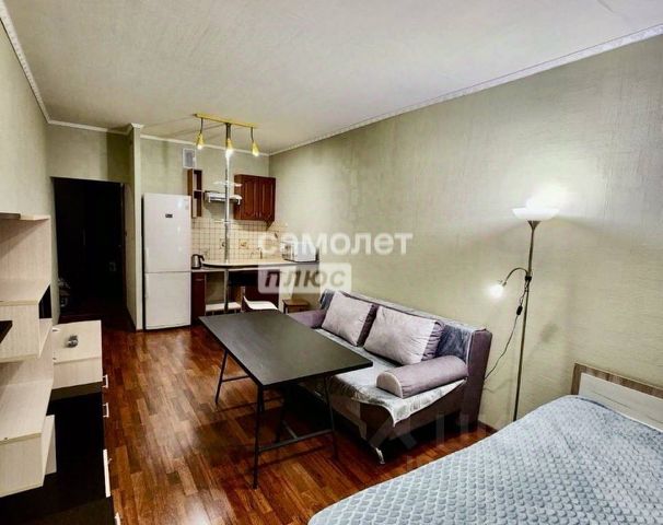 В квартире выполнен косметический ремонт, что позволяет сразу после покупки наслаждаться комфортом. Планировка студии включает совмещенный санузел и лоджию, где обустроена гардеробная и рабочее пространство.