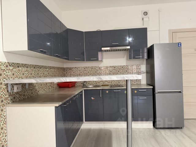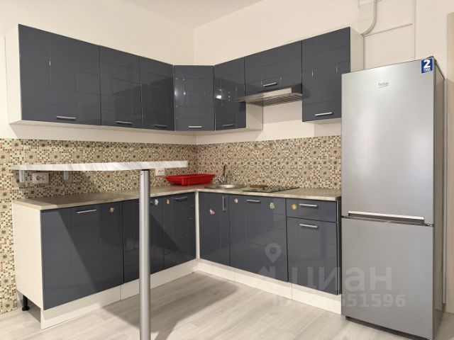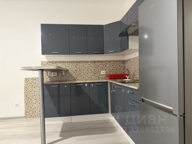Общая площадь квартиры составляет 41 кв. м, из них жилая — 15 кв. м, а просторная кухня-гостиная — 15 кв. м. укомплектована встроенной кухней отличного качества, где все продумано до мелочей. Каждая секция распланирована для удобного использования. Например, выдвижной ящик для приборов разделен на два уровня, что позволяет разместить большее количество прочих кухонных мелочей. Есть выкатная секция для бутылок, угловая секция укомплектована выкатными корзинами. Встроены большой холодильник Samsung с системой no frost, посудомоечная машина Bosh 60 см, индукционная варочная панель на 4 комфорки, духовой шкаф имеет функцию микроволновой печи. Фартук выполнен из эксклюзивной итальянской плитки. Встроен дополнительный свет, управляемый жестами. Эргономично разграничено пространство кухонной зоны и гостиной.
