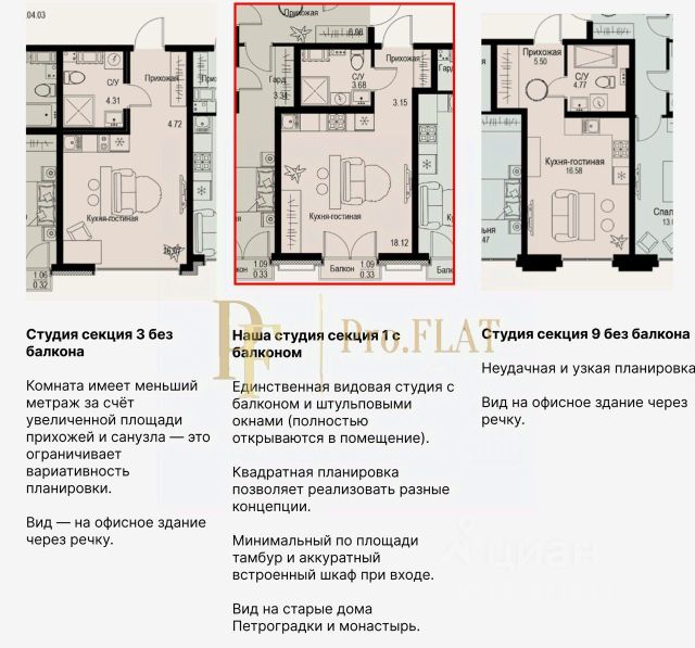 id:14294. ДЛЯ СОЕДИНЕНИЯ С МЕНЕДЖЕРОМ ВВЕДИТЕ ДОБАВОЧНЫЙ НОМЕР "712" Эта студия - один из редчайших вариантов в проекте. Единственная в корпусе с видом, балконом и штульповыми окнами, которые полностью открываются внутрь помещения. Такое остекление даёт эффект большого светлого пространства, позволяет открыть окна и сидеть за уютным столиком на балконе. Планировка - одно из ключевых преимуществ. Правильная квадратная геометрия позволяет гибко распределять пространство: выделить приватную спальню у окна, создать удобную евро-планировку или оставить просторный open-space. Входная зона организована идеально - тамбур минимальный, поэтому вся площадь работает на жизнь, а не на коридоры. У прихожей есть место для аккуратного встроенного шкафа, который решает вопросы хранения без потери воздуха и визуальной лёгкости. Ещё одна особенность - расположение в первом корпусе. Это даёт вид, который в проекте встречается крайне редко: окна выходят на старую Петроградку - дома 32-36, и на Иоановский монастырь. Это именно тот классический "петербургский" горизонт, который ценится годами и почти не теряет ликвидности. Для сравнения: большинство других видовых студий ориентированы на офисные здания (дом 46), что делает именно этот вариант более выигрышным и эстетически, и инвестиционно. Ориентация по сторонам света - образцовая. Благодаря высокому этажу и удачному положению корпуса в квартире будут видны летние и зимние рассветы, дневное солнце и мягкий зимний закат. Для студии такого метража это очень редкая комбинация: световой режим создаёт комфортную атмосферу утром, объём днём и красивый вечерний свет зимой. Такие параметры повышают ликвидность и делают квартиру универсальной - идеально подходит и под личное проживание, и под инвестиции. О ЖИЛОМ КОМПЛЕКСЕ Жилой комплекс - это клубный квартал из 29 секций высотой 6 этажей, расположенный в тихом центре Петроградского района - между улицей профессора Попова и набережной Карповки. Локация сочетает историческую атмосферу "старой Петроградки", современные дома, ухоженные набережные и близость к деловой части острова. Архитектура и инженерия - Во всех квартирах потолки 3 метра и панорамные окна высотой 2,8 м. - В каждой секции предусмотрены отдельные технические помещения для установки кондиционеров - фасады остаются чистыми и эстетичными. - На первых этажах размещены колясочные; в секциях - грузовые лифты, удобные при переездах и ремонтах. - Входные группы и общие зоны выполнены по авторскому дизайн-проекту. Приватность и благоустройство Проект предусматривает полное благоустройство набережной Карповки. Застройщик также реставрирует старинную артезианскую скважину императорских времён - она станет частью внутреннего пространства. Дворы закрытые, камерные, без машин - гостевой паркинг вынесен за пределы жилой зоны. Инфраструктура внутри квартала В состав проекта входят: - детский сад на 100 мест, - начальная школа на 200 мест, - магазины, сервисы, салоны и медицинские центры - в шаговой доступности. Т