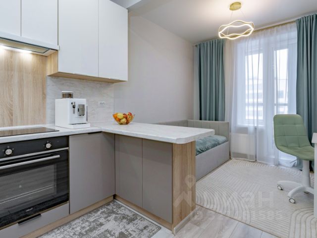 КОМНАТА: П-образная кухня, холодильник, микроволновка, 2х комфорочная плита, чайник, посуда, приборы, весы настольные, тостер, вся навеска, электронный дозатор мыла, локальное освещение рабочих зон.