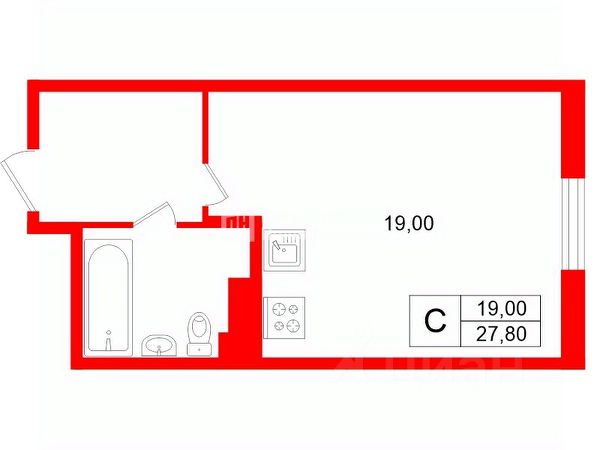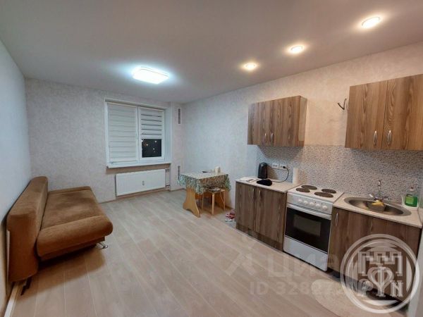 Квартира-студия расположена на 4-м этаже 4-х этажного жилого дома. Общая площадь квартиры - 24,4 кв.м., высота потолка 2.75 м., застекленная лоджия.