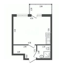 Продается студия, площадью 29.4 кв.м. Жилая площадь 19.75 кв. м, кухня 4.41 кв. м, ремонта нет, комнаты смежные. Квартира располагается на 10 этаже 11-этажного монолитного дома.