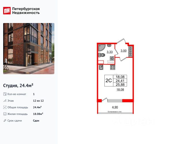 Продается уютная студия в современном жилом комплексе, расположенном по адресу Россия, Санкт-Петербург, 1-й Предпортовый проезд, 13. Квартира площадью 24 кв. м находится на 6 этаже 12-этажного дома, построенного в 2020 году. Высота потолков 2,75 метра делает пространство визуально более открытым и светлым. В квартире сделан косметический ремонт, что позволяет новому владельцу сразу заехать и обустроиться по своему вкусу. Комфортная планировка включает совмещенный санузел и лоджию с видом на улицу. Квартира полностью готова для проживания и не требует дополнительных вложений. Дом построен из монолитно-кирпичных материалов и оснащен всеми необходимыми удобствами для комфортной жизни. В вашем распоряжении подземная парковка, где всегда найдется место для вашего автомобиля. В доме установлены пассажирский и грузовой лифты, а также предусмотрены пандусы для удобства перемещения. Инфраструктура района развита и удобна для повседневной жизни. В шаговой доступности находятся школы, детские сады, клиники и магазины. До метро "Московская" можно добраться пешком за 21 минуту, что делает передвижение по городу комфортным и быстрым. Продажа квартиры осуществляется по договору купли-продажи. При необходимости возможна покупка в ипотеку. Квартира юридически чистая, без обременений и готова к сделке. Записывайтесь на просмотр, чтобы лично оценить все преимущества этого предложения. Мы уверены, что эта квартира станет уютным и комфортным домом для вас. Продам квартиру-студию (вторичка) на проезде 1-й Предпортовый в Санкт-Петербурге.