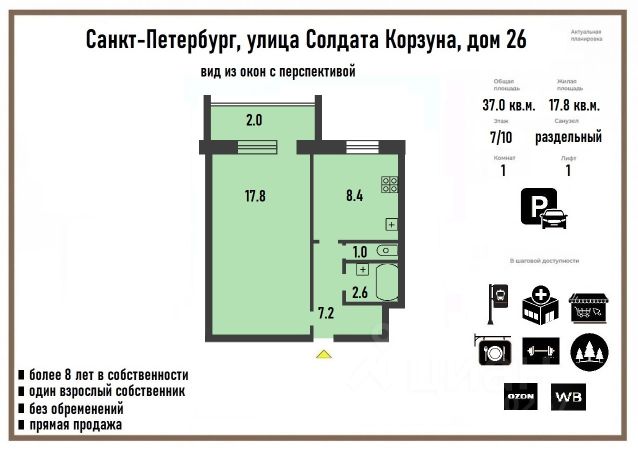 Прямая продажа, полная стоимость в договоре, 1 взрослый собственник, без обременений.