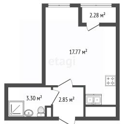 Кухня с лаконичным и современным дизайном, выполненным в светлых тонах. Пространство организовано максимально функционально, что идеально подходит для компактной квартиры. Остается новому владельцу