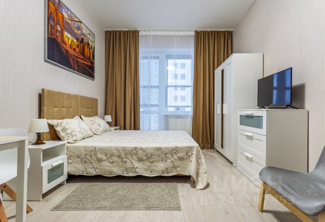 Общая площадь студии составляет 24,4 м2, кухня-гостиная 16,2 м2, прихожая 2,7 м2, совмещенный санузел площадью 3,5 м2 и просторная лоджия с панорамными окнами и морозостойким вместительным шкафом для хранения площадью 2 м2.