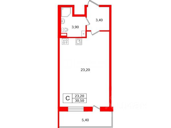 Комната - 18 кв.м.- встроенная кухня, встроенная варочная поверхность и духовой шкаф ,вытяжка, холодильник, раскладной стол со стульями. диван-кровать.