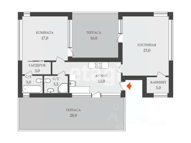 - Терраса 30 кв.м.;