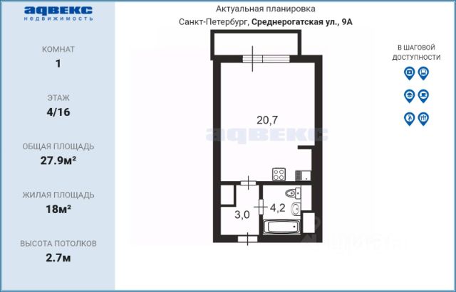 Номер объявления: 21554 - назовите его оператору. Просторная студия с огромной лоджией в престижном Московском районе (ЖК "Две столицы") Ищете идеальный вариант для комфортной жизни или надежной инвестиции под аренду? Обратите внимание на эту светлую и полностью готовую студию в современном кирпично-монолитном доме 2018 года постройки. О квартире и ваших выгодах: При общей площади 25 кв.м., жилая зона составляет целых 17.5 кв.м. Это позволит вам грамотно зонировать пространство на полноценную спальню и зону отдыха, избегая тесноты стандартных студий. Согласитесь, важно чувствовать простор в своем доме? Большая лоджия (4.7 кв.м.): Фактически — это дополнительная теплая комната. Здесь идеально разместится рабочий кабинет, лаунж-зона или место для утреннего кофе. Хотели бы иметь уютное личное пространство с хорошим обзором? Качественный евроремонт: Квартира не требует абсолютно никаких вложений. Отделка выполнена в приятных светлых тонах, состояние — "заезжай и живи". Это сэкономит вам месяцы времени и сотни тысяч рублей. Разве не здорово получить ключи и сразу праздновать новоселье, минуя этап пыльного ремонта? Комфортный 5-й этаж из 17: Оптимальная "золотая середина". Вы не зависите от работы лифтов, а вид из окон на улицу обеспечивает отличную инсоляцию — в квартире всегда будет светло и уютно. О жилом комплексе и локации: ЖК комфорт-класса "Две столицы". Все шумные ремонты у соседей давно завершены — вас ждет тишина и спокойная, однородная социальная среда. Московский район — залог высокой ликвидности недвижимости. В шаговой доступности есть всё необходимое: ТРЦ Лето, Окей, Максидом, OBI, HOFF-15 минут пешком. Пекарни, аптеки, пункты выдачи в доме. Выезд на КАД, ЗСД 3 минуты на машине. Напротив дома остановка общественного транспорта. Автобус до метро Звездная. Юридическая информация (всё прозрачно): 1 взрослый собственник. Без скрытых проблем и долгов. Быстрый выход на сделку и профессиональное сопровождение на каждом этапе. Звоните прямо сейчас, чтобы задать уточняющие вопросы и записаться на просмотр! Какое время вам было бы удобнее — в первой или во второй половине дня? Квартира-студия (вторичка) на улице Среднерогатская в Санкт-Петербурге.