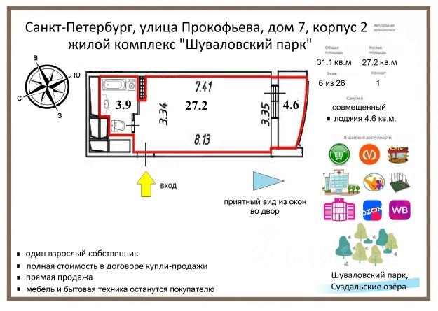 До метро Удельная — 15 минут пешком, удобный выезд на КАД и ЗСД, быстрый доступ к центру города и курортным пригородам.