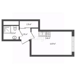 - По документам площадь студии чуть меньше(21,9кв.м.), так как в план не включены 3 большие ниши задуманные архитектором, общей площадью более 3 кв.м. По факту: 25кв.м.