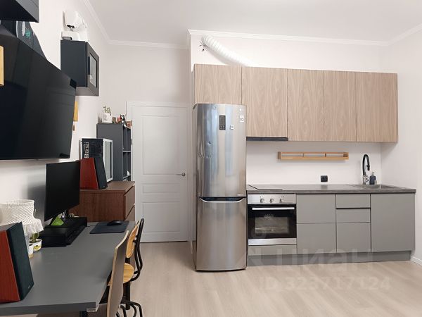 Квартира-студия сдаётся с полной чистовой отделкой высокого качества ""NORD LINE WHITE"", на полу современный кварц-виниловый ламинат, гладкие обои под покраску, натяжные потолки, санузел полностью в кафеле, укомплектованный всей сантехникой. Электрический теплый пол в санузле, на балконе на полу плитка, коллекторная разводка труб отопления (трубы под полом создают эффект теплого пола в комнате).