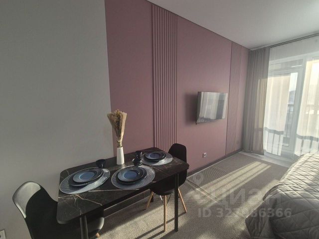 Студия площадью 24,49 м2 имеет органичную планировку с кухней-нишей, окна на юго-запад, закрытая остекленная лоджия 5,4 м2 с напольным покрытием