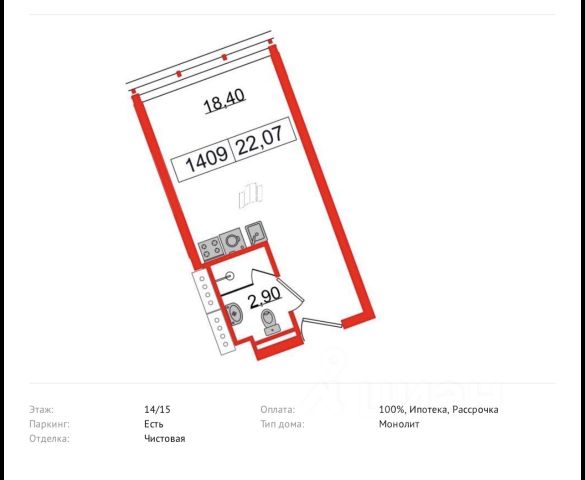 • ✓ В базе Циан 62 квартир-студий.